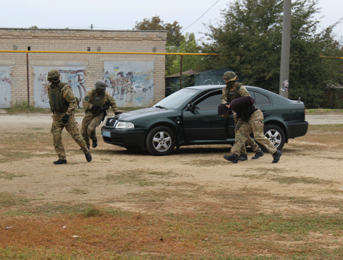 В завершение правоохранители наглядно продемонстрировали способ перехвата движущегося автомобиля и задержания находящихся в нем преступников.