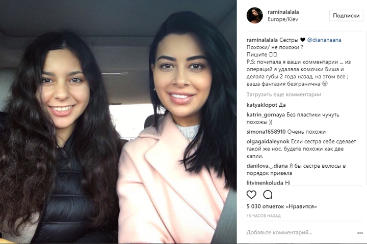 Комментаторы отметили, что похожи, но Рамина изменила себя пластикой.