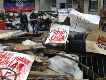 Днем 4 мая в Енакиево на площади под горисполкомом состоялся бессрочный митинг "Донецкой народной республики", на который вышли шахтеры.