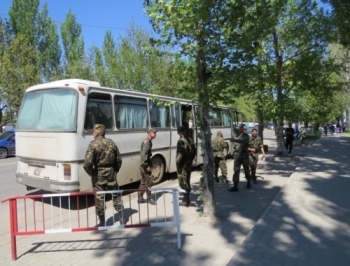 Сегодня целый день в городе распространяются слухи о том, что в город приехал целый автобус с военными. Правда, версии разнятся - от «Правого сектора» - до неизвестных приезжих боевиков с востока страны.
