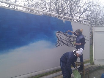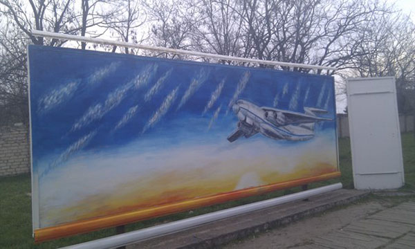 Напомним, идея создать уличное панно в честь погибших мелитопольских летчиков у «пиплов» родилась еще осенью минувшего года. Но пока девчонки работали над эскизом, пока работа проходила согласование с командованием части погода испортилась и художницам пришлось взять «отпуск» на зиму. В конце марта девушки выполнили задуманное. На плите у КПП снова в безоблачное небо взмыл ИЛ-76.