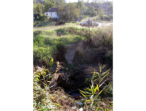 Чьи коммуникации врезаны в трубу под насыпью, достоверно неизвестно, но люди поговаривают, что туда выходит сброс маслоэкстракционного завода, и раньше предприятие неоднократно сбрасывало в ручей отходы.