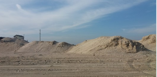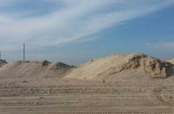 Как комментирует увиденное автор, вокруг промоины громоздятся горы песка.