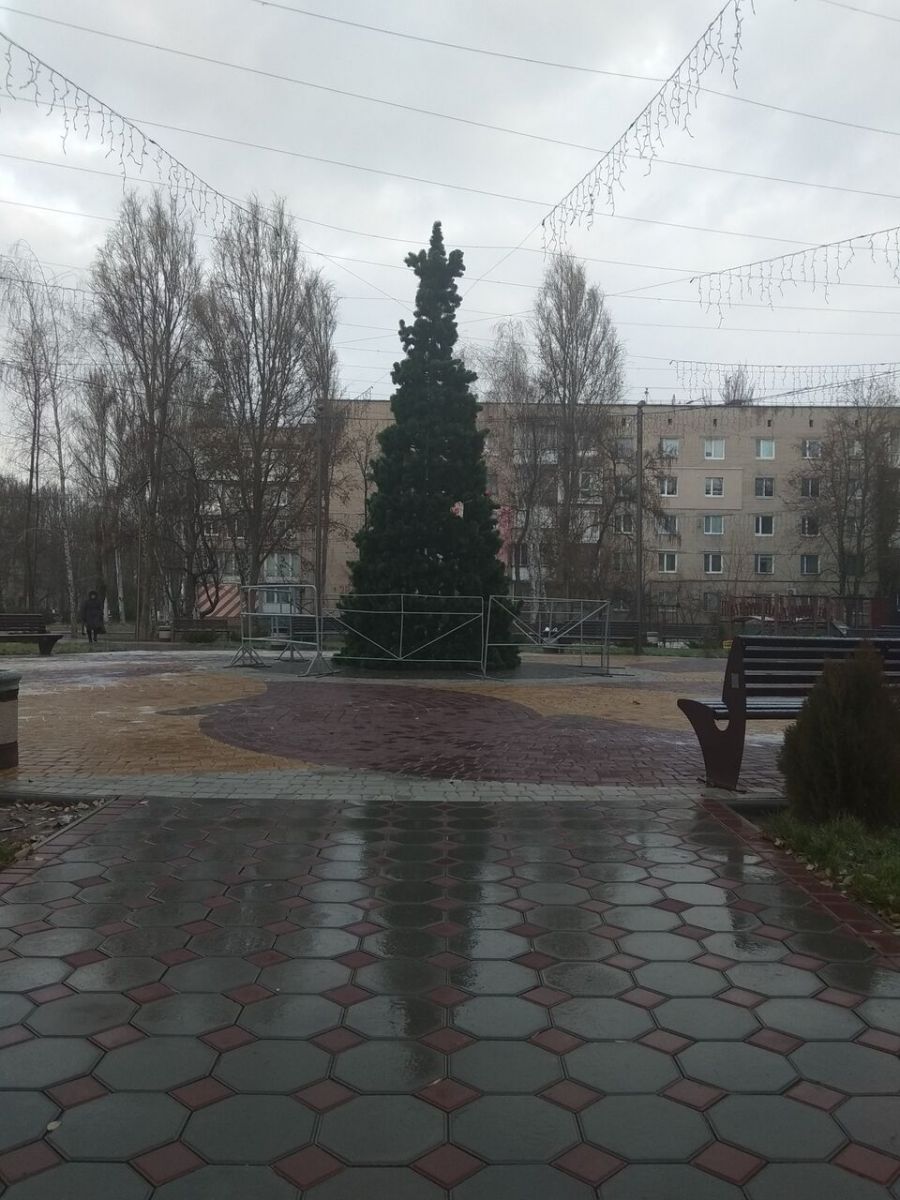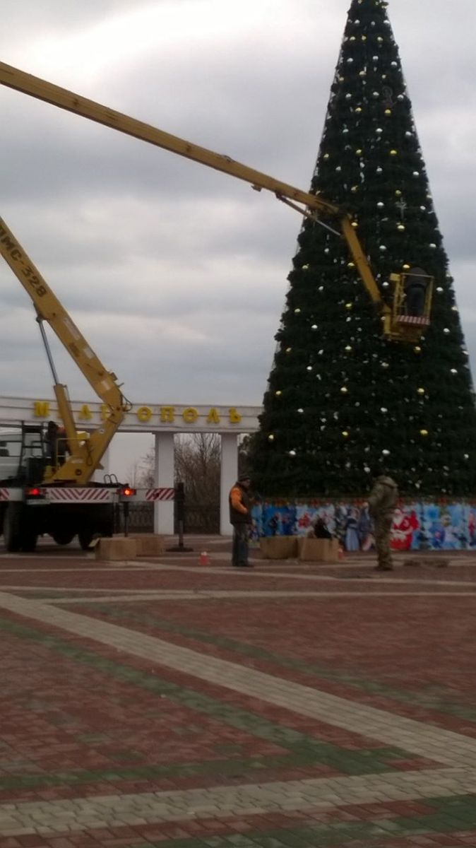 Мелитополь понемногу погружается в новогоднюю атмосферу. Так, в сквере Дружбы народов, который расположен на ул. Брив-ла-Гайард, коммунальщики закончили монтаж новогодней елки.