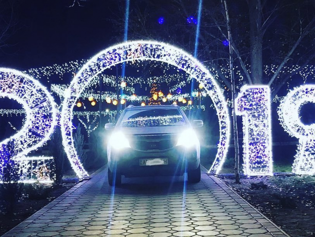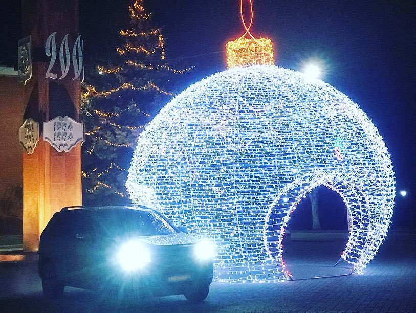 Водитель внедорожника решил удивить селфи на фоне новогодних инсталляций.
