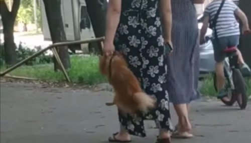 На одной из улиц города женщина необычным образом выгуливала собаку. Хозяйка небольшого шпица не вела его на поводке, а держала за шлейку и несла, при этом слегка размахивая питомцем из стороны в сторону, словно дамской сумкой. Через некоторое время она взяла животное на руки, сообщает портал Вместе.