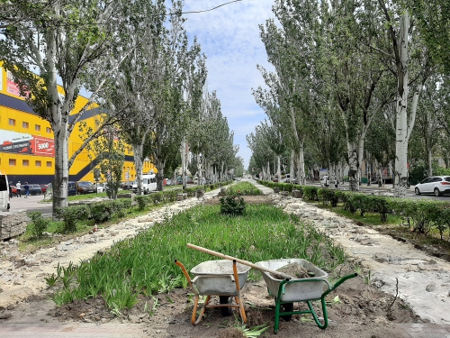 Сейчас в сквере разбирают прежнюю тротуарную плитку, а также очистили от цветов часть клумбы, расположенной между дорожками. Зачем - неизвестно, ведь и прежняя была в хорошем состоянии. В дальнейшем здесь положат новый тротуарный камень и осенью высадят новые зеленые насаждения. Но главным атрибутом сквера станет памятный знак жертвам Холокоста. О его установке впервые заговорили еще летом прошлого года.