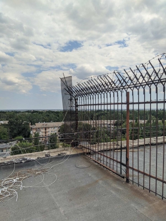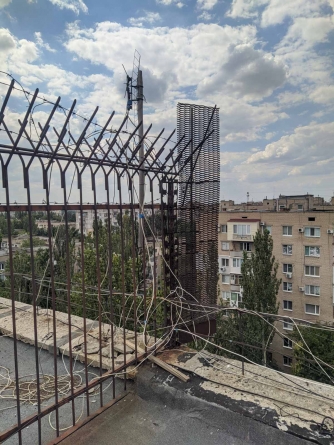 В Мелитополе на крыше многоэтажки установили двухметровый забор с колючей проволокой