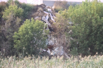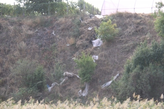 Сами теплицы, естественно, никому не мешают, а вот мусор, связанный с ними, глаз не радует. В двух местах склон усеян использованной полиэтиленовой пленкой и хозотходами. Они "стекают" прямо в реку, образуя каньоны из пластка.