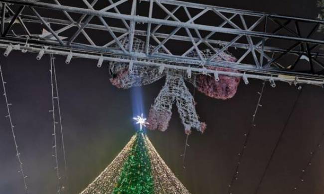 На металлической конструкции прямо над головами людей, которые пришли посмотреть на открытие ёлки, внезапно начался салют. От него загорелся декоративный бант. Его через минуту потушили огнетушителями из ближайшего "домика" с глинтвейном. И ещё оторвалась одна гирлянда в процессе пожара.