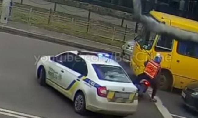 На Днепровской набережной в Киеве работник курьерской службы на скутере скрыться от полицейских на авто. Запись опубликована на YouTube-канале BerCrime.