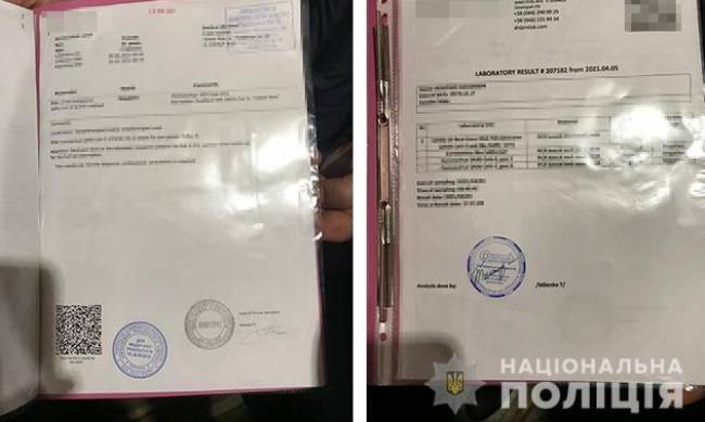 Днем ранее, 29 марта, полицейские провели санкционированный судом обыск по месту жительства злоумышленницы. В ходе следственных действий правоохранители изъяли из квартиры три справки о прохождении тестов с печатью из лаборатории, более 50 тысяч гривен, черновые записи, мобильные телефоны и банковскую карточку.