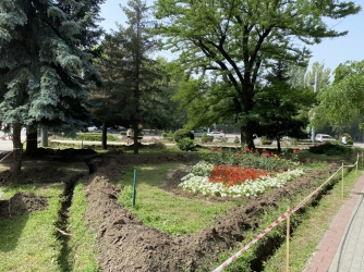 Коммунальщики покосили траву и привели в порядок газоны, а также приступили к благоустройству трех клумб возле танка. Рабочие занимаются укладкой современной системы полива и дождевателей, а также заменой полиэтиленовых труб. Завершающим этапом станет высадка роз и укладка рулонного газона.