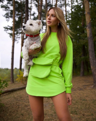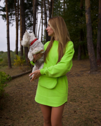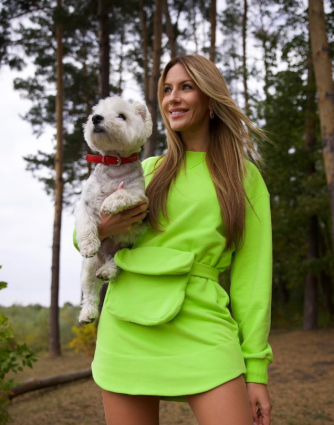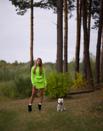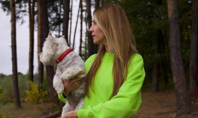 Леся Нікітюк в кислотному міні наробила фото з песиком у лісі