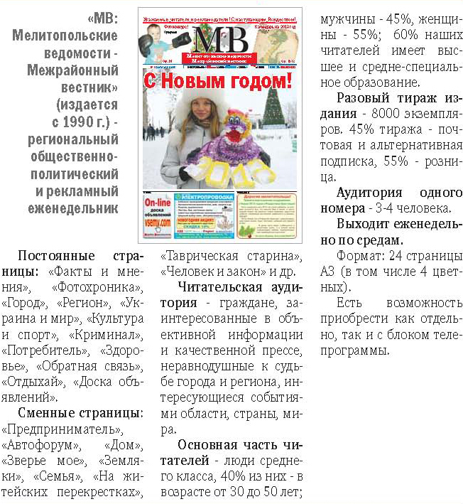 Газета "Мелитопольские Ведомости"