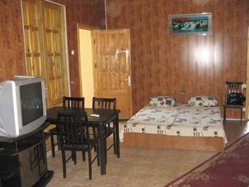 Размещение: к Вашим услугам круглосуточно ном6ера «люкс» в двухэтажной гостинице. Для любителей единения с природой – отдельные деревянные домики с верандами и беседками, с живописным пейзажем местной усадьбы. Номера двухуровневые до 6 мест, с удобствами, оборудованы кондиционерами, удобными деревянными кроватями.