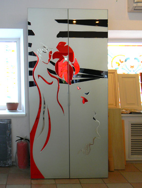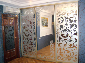 Еще одна применяемая нами технология – пескоструйная обработка зеркала или стекла, позволяет превратить прозрачную поверхность в матовую, а нанесение матовых рисунков на зеркало и стекло придаст интерьеру исключительную оригинальность и декоративность.