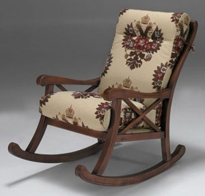 Конструкция называется «рокер». Ее можно охарактеризовать как тип стула с двумя изогнутыми полозьями (рокерами), прикрепленными к нижней части ножек, присоединяющий ноги на каждой стороне друг с другом. Рокеры соприкасаются с полом только в двух точках, давая возможность конструкции раскачиваться взад и вперед. Обычно мебель изготавливается из дерева. Некоторые модели могут складываться.