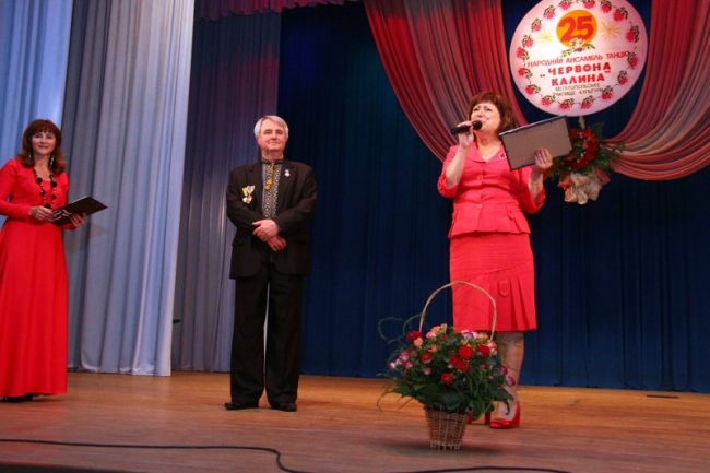 С 25-летием «Червону калину» и ее руководителя Н. Себестиянского поздравила управделами исполкома Елена Дубинина, вручив юбилярам почетные грамоты исполкома горсовета и денежную премию. Целую стопку грамот и благодарностей, а также подарок вручил Николаю Антоновичу и его коллективу директор МУК Михаил Егоров.