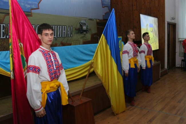 В торжественной обстановке в зал внесли флаги - Украины и Запорожской области, а праздник начался с исполнения Гимна. Для гостей была подготовлена видеоподборка ключевых моментов создания Конституции Украины.