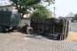 На ул. Дзержинского с минувшей ночи лежит перевернувшийся зерновоз