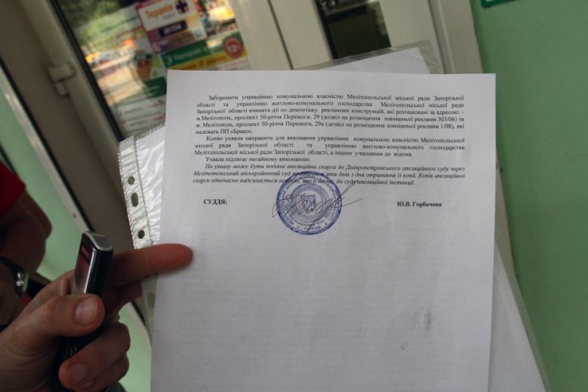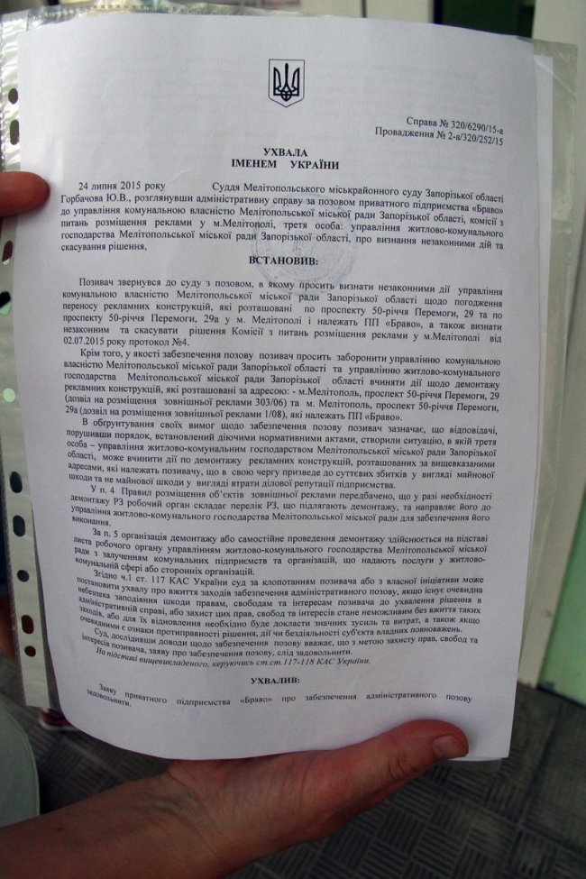 И таки слово свое сдержал. Сегодня, после 16.00 начался демонтаж двух рекламных щитов, расположенных на пр. 50-летия Победы. При этом собственник щитов, Виталий Гаргопов, получил Ухвалу суда, которая декларирует законность размещения данных рекламных конструкций и запрет на любые действия с ними.