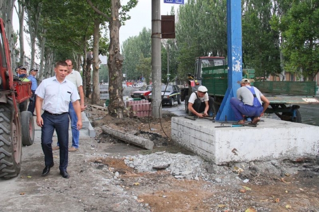 В. Гаргопов попытался блокировать работу коммунальщиков, которые демонтировали щиты, однако на место работ прибыли два зама городского головы Иван Федоров и Сергей Павленко, и работа продолжилась.