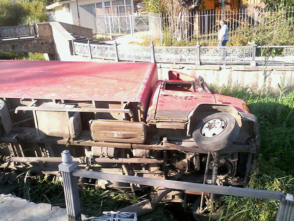 В Симферополе грузовой автомобиль упал в речку Салгир. По предварительной информации, у машины отказали тормоза. Как сообщают очевидцы, водитель предпочел реку столкновению с заправкой. Сейчас мужчина госпитализирован.