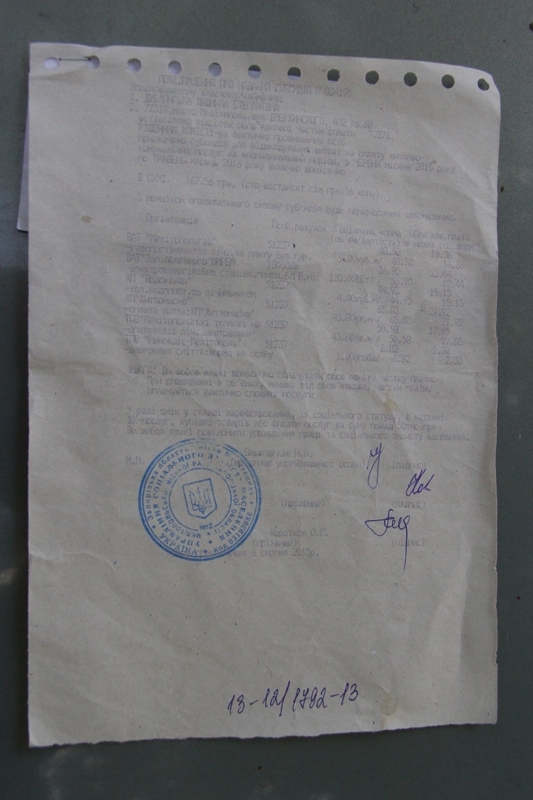 Оформляла субсидию я долго. Премьер Яценюк с экрана телевизора не раз рассказывал, как это просто, и что все документы есть в компьютере. На деле оказалось все не совсем так. Меня гоняли по кабинетам и организациям. С горем пополам все документы собрала, отдала, и стала ждать - обещали после 25-го июня перезвонить. Но позвонили уже на следующий день. Оказалось, я не поставила какую-то подпись. Пришлось опять собираться, ехать, хотя для меня это очень непросто. А вот звонка о назначении субсидии я так и не дождалась. Соседи уже получили, а я в неведении. Платить за коммунальные услуги не могу: пенсию получу, лекарства куплю, а жить нечем.