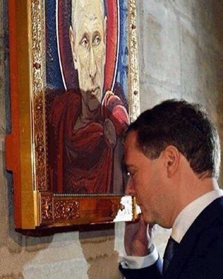 Сын шоумена и актера Дмитрия Нагиева Кирилл опубликовал на странице в Instagram фото, на котором премьер-министр РФ Дмитрий Медведев прислоняется к иконе, лик которой заменен на изображение президента Владимира Путина.