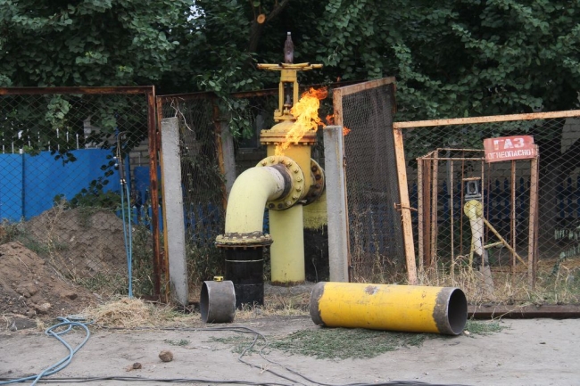 Утром ремонтники прорезали газопровод и сейчас выжигают из него остаточный газ, чтобы можно было приступить к сварочным работам. Завершить их планируется к вечеру.