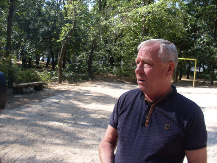 Сергей Кизилов, председатель общественной организации «Народная инициатива»: Основную работу по благоустройству мы начали проводить еще в прошлом году. Мы очень рассчитывали, что у нас будут помощники. Обращались в разные организации, но, как оказалось, помощников в городе мало. Теперь мы, наконец, нашли единомышленников в лице «Оппозиционного блока», они нам очень хорошо помогли - молодцы. Сейчас общими усилиями мы смогли продолжить работы по благоустройству, правда сделать еще осталось очень много - нужно сделать беговую дорожку, убрать весь мусор и расчистить дополнительную территорию для хорошей спортивной площадки. Мы даже не ожидали, что здесь столько мусора - чего мы только тут не находили: шприцы, горы бутылок, остатки «лежбищ» асоциальных элементов. Даже страшно представить, что происходит здесь по ночам, куда смотрят правоохранительные органы! То, что мы смогли сделать тут общими усилиями - это очень большое, хорошее дело. В каждом районе города есть спортивная площадка, теперь благодаря нашим усилиям, а также помощи «Оппозиционного блока» она будет и здесь. Пусть она не слишком большая, но для молодежи, проживающей в этом районе города это уже большой плюс. Также мы заручились помощью милиции, которая обещала дополнительно патрулировать этот сквер в ночное время.
