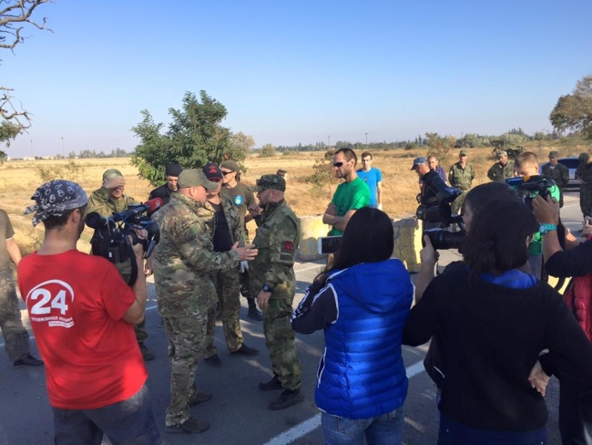 100 активистов с крымскотатарской символикой, символикойпартии "Правый Сектор", батальона "Айдар" и "Самообороны Майдана" готовятся перекрыть дороги в Крым для грузового транспорта возле пунктов пропуска в Херсонской области.