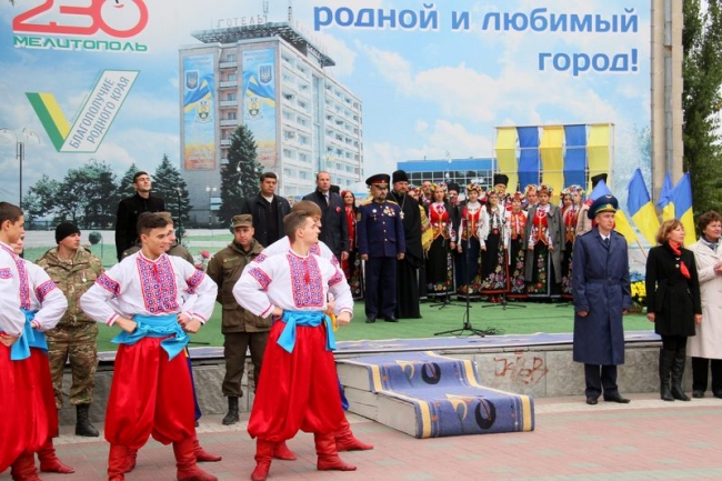 Поздравили собравшихся на площади мелитопольцев депутат облсовета Владимир Кюрчев, председатель совета ветеранов войны и труда Владимир Андреев, атаман Мелитопольского казацкого куреня Войска Запорожского Низового Игорь Лысенко. Праздничное настроение создавали артисты художественных коллективов ДК им. Т. Шевченко, ДК железнодорожников, Детской школы искусств.