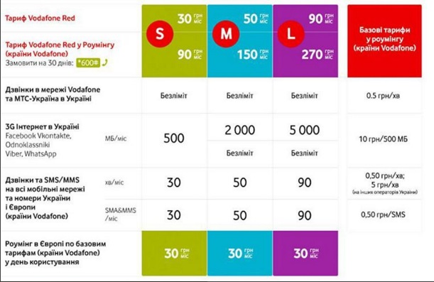 Согласно новой системе будет три тарифных плана S (30 грн), M (50 грн), L (90 грн), которые предусматривают безлимитные звонки в сетях Vodafone и МТС, разнообразный объем трафика 3g интернета ( 500 мб, 2000мб, 5000 мб), количество бесплатных минут звонков (30, 50, 90 ) и смс (30, 50, 90 ) на номера других операторов.