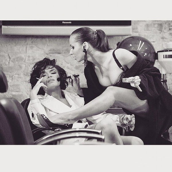 Надя на фотографии сидит в кресле, а LOBODA с откровенным декольте и обнаженным бедром пытается припудрить Наде щеку. Светлана с помощью такого фото поздравила Надю с пополнением в ее семье и пожелала новорожденной малышке крепкого здоровья.