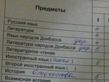 Ученикам донецких школ выдали табеля с оценками по итогам первой четверти, в которых указано, что дети в так называемой «ДНР» изучают язык и литературу "народов Донбасса".