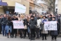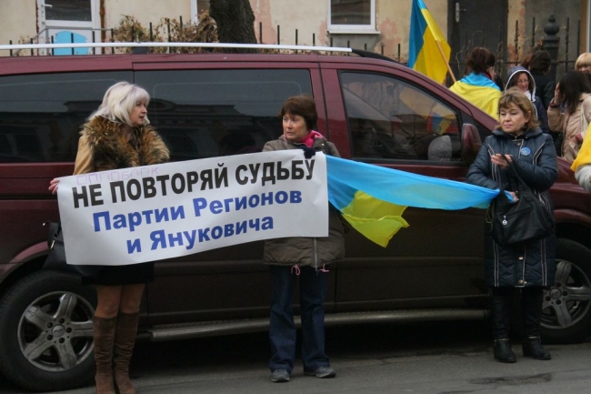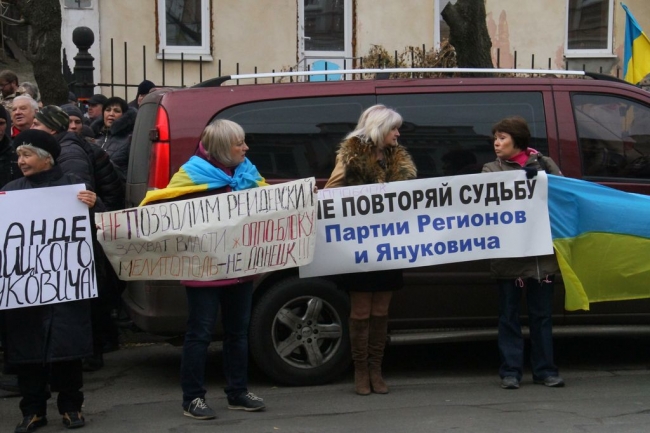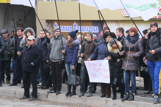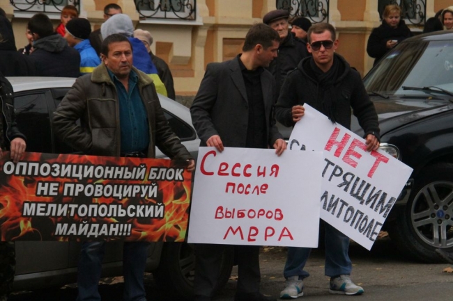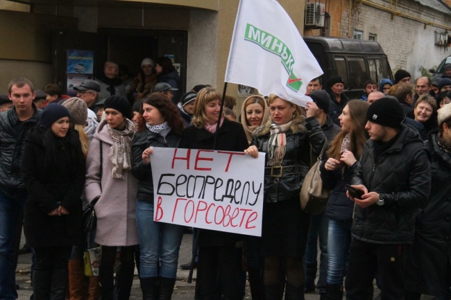 Вместе с ними зал заполняют и представители союза патриотических сил. Параллельно у стен мэрии собрались сотни активистов, которые, по словам и.о. городского головы Сергея Минько, «на абсолютно безоплатной основе» собрались, чтобы выразить свою гражданскую позицию. На плакатах митингующих слоган «нет доктору «смерть», "Нет беспределу в горсовете", а на белых флагах «Минько»,