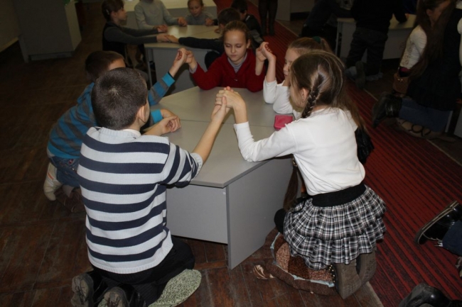 Зал, в котором проходил тренинг, был украшен плакатами на тему толерантности, нарисованными школьниками, учащимися училищ и внешкольных заведений. Детвора расположилась на мягких подушках у низеньких столиков, что создавало теплую, неофициальную, дружественную атмосферу.