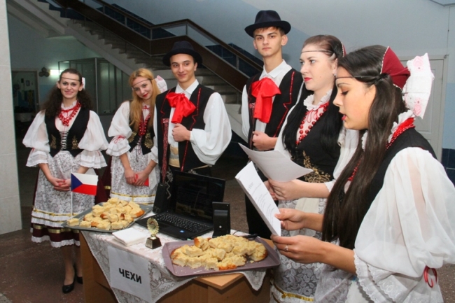 Наиболее основательно к делу подошли чехи. Юноши и девушки в национальных костюмах представляли не только страну своих дедов и прадедов, но и Чехоград (с. Новгородковка Мелитопольского района), где сегодня компактно проживают чехи и их потомки. Слушая ребят, наслаждаясь народными песнями и танцами, всем было ясно, что традиции этого народа еще живы, причем не формально – им следуют, их чтут. Вывалив на слушателей ворох информации о Чехограде, студенты не забыли и о том, что их гостям захочется подкрепиться. Всех желающих чехи угощали традиционной посыпанкой – печеной сладкой сдобой.