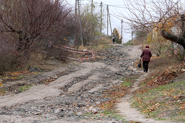 Яркий пример тому - ул. Пахомова. Подъем по ней довольно сложен, особенно для пожилых людей. Ведь остатки асфальта превратили дорогу в сплошные рытвины.