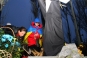 В конце митинга собравшиеся возложили к памятному знаку жертвам голодомора цветы. И выложили из зажжённых лампадок колос памяти.