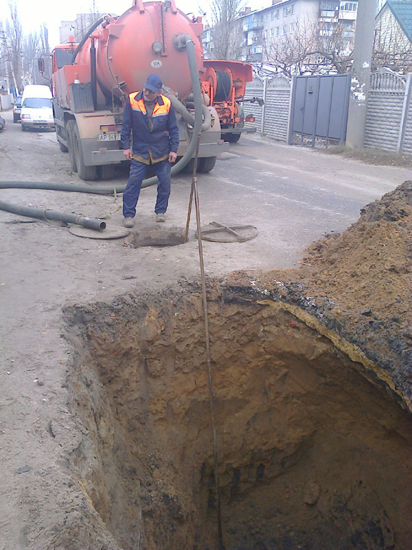Во время работ проход стоков через поврежденный участок не прекращался. Осложнялась задача и тем, что коллектор залегал на глубине более 3 м.