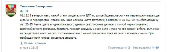 Вчера, 1 декабря, на ул. Заднепровская на пешеходном переходе в районе перекрестка Гудыменко водитель автомобиля «Лада Самара» сбил девушку 20-25 лет.