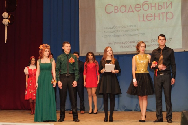 В Таврическом государственном агротехнологическом университете прошел "Осенний бал". По паре прекрасных молодых людей с каждого факультета соревновались за право называться Королем и Королевой бала. Они танцевали вальс, хвалились талантами, демонстрировали осенние наряды и букеты.
