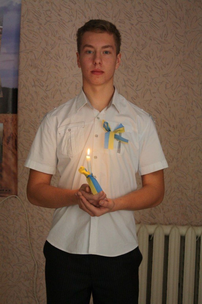За последние годы страшную дань войне заплатил наш край. Выполняя свой воинский долг на востоке Украины, погибло немало наших земляков. Примером героизма и национальной мужества стала оборона Донецкого аэропорта, которая продолжалась 243 дня. Одним из парней, который защищал территию близ аэропорта, был мелитополец Богдан Гончаренко – выпускник строительного центра. Именно ему в большей степени было посвящена прошедшая встреча, подготовленная библиотекарем центра Аллой Надтокой и воспитателем общежития Светланой Скибой. В актовом зале собрались ученики и педагогический коллектив центра, родные и близкие Богдана, прибыл на встречу и сослуживец погибшего мелитопольца - старший сержант Виталий Доновский.