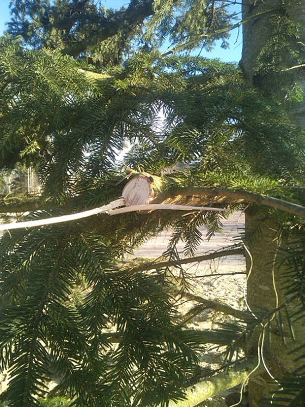 У символа Нового Года не хватает нескольких веток с одной стороны. При ближайшем рассмотрении становится понятно, что ветки не были сломаны или повреждены случайно. Место срубов идеально ровное, а значит, что кто-то орудовал пилами и, скорее всего, взял себе кусочки Черновецкой красавицы. Некоторые очевидцы утверждают, что пилили елку сами коммунальщики.