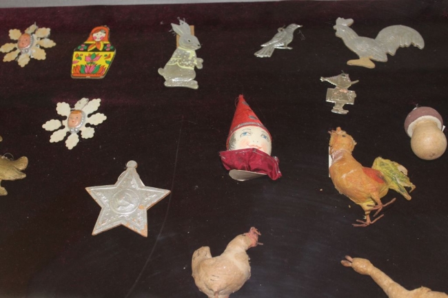В фондах музея хранится более 500 штук елочных украшений. Самые старинные относятся к началу прошлого века. Это - картонные зверушки, разукрашенные серебряной краской. В 1944 году в газете "Радянский степ" было опубликовано объявление о том, что артель "Червоний партизан" изготавливает елочные игрушки из местного материала. Потом стали делать объемные игрушки из ваты, которую окрашивали краской и посыпали специальным порошком, который не воспламенялся. Внимание шестиклассников привлек клоун. Как оказалось, эта уникальная елочная игрушка сделана в 1949 году из яйца руками воспитанников мелитопольского детского дома при заводе им. Микояна под руководством воспитателя Ольги Яковлевны Костевой, которая затем много лет работала учителем математики в школе №5.