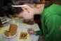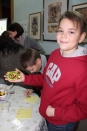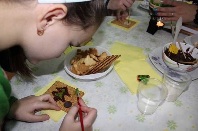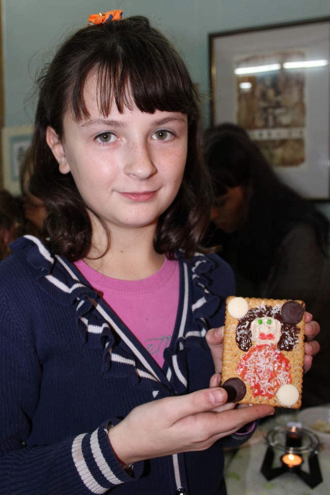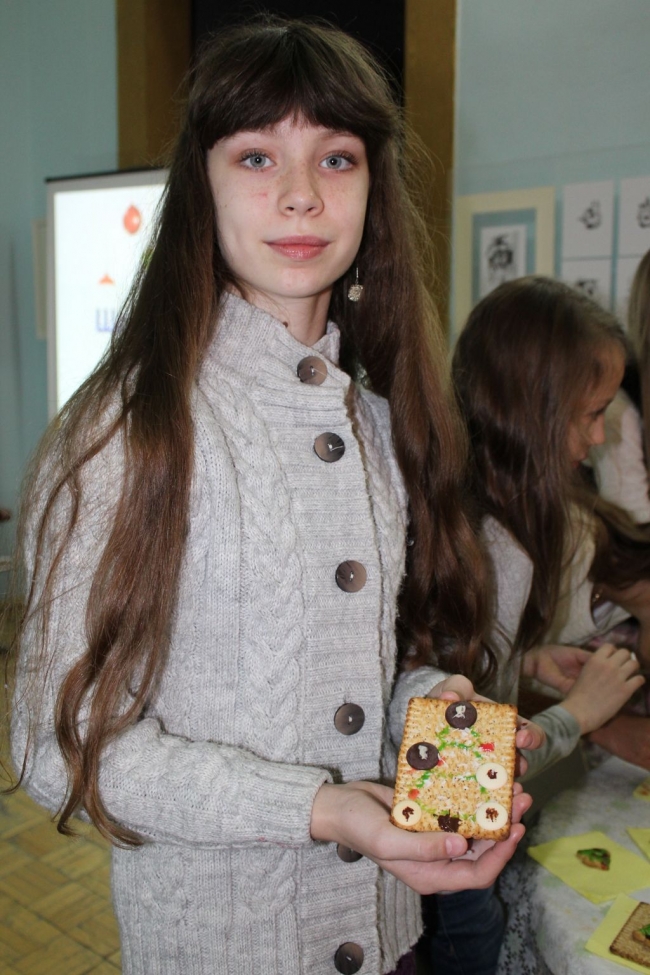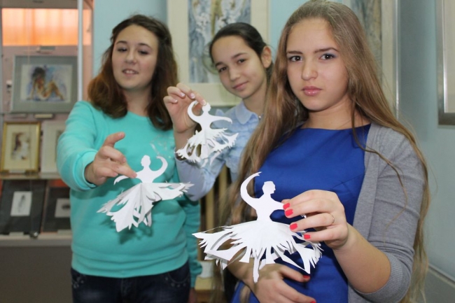 Новогодняя теория была закреплена практикой - все отправились в соседний зал, где с интересом рассматривали витрины с музейной коллекцией, елку, наряженную как много десятилетий назад - с пряничками и яблочками, самодельными бумажными снежинками и балеринками. Именно такую снежинку-балеринку предложила научиться делать своими руками художник музея Светлана Кулешова. Ну, а пока одни шестиклассники вырезали и скрепляли бумажные части, другие вместе с научным сотрудником музея Заремой Ибрагимовой колдовали над пряниками и печеньками, разукрашивая их растопленным разноцветным шоколадом.