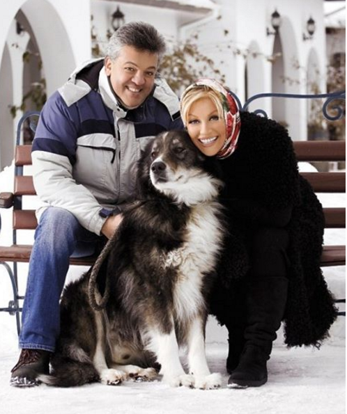 В соцсеть певица выложила снимок, где она со своим мужем Игорем Лихутой сидят на скамейке, а рядом возле них стоит большой красивый пес Басар.